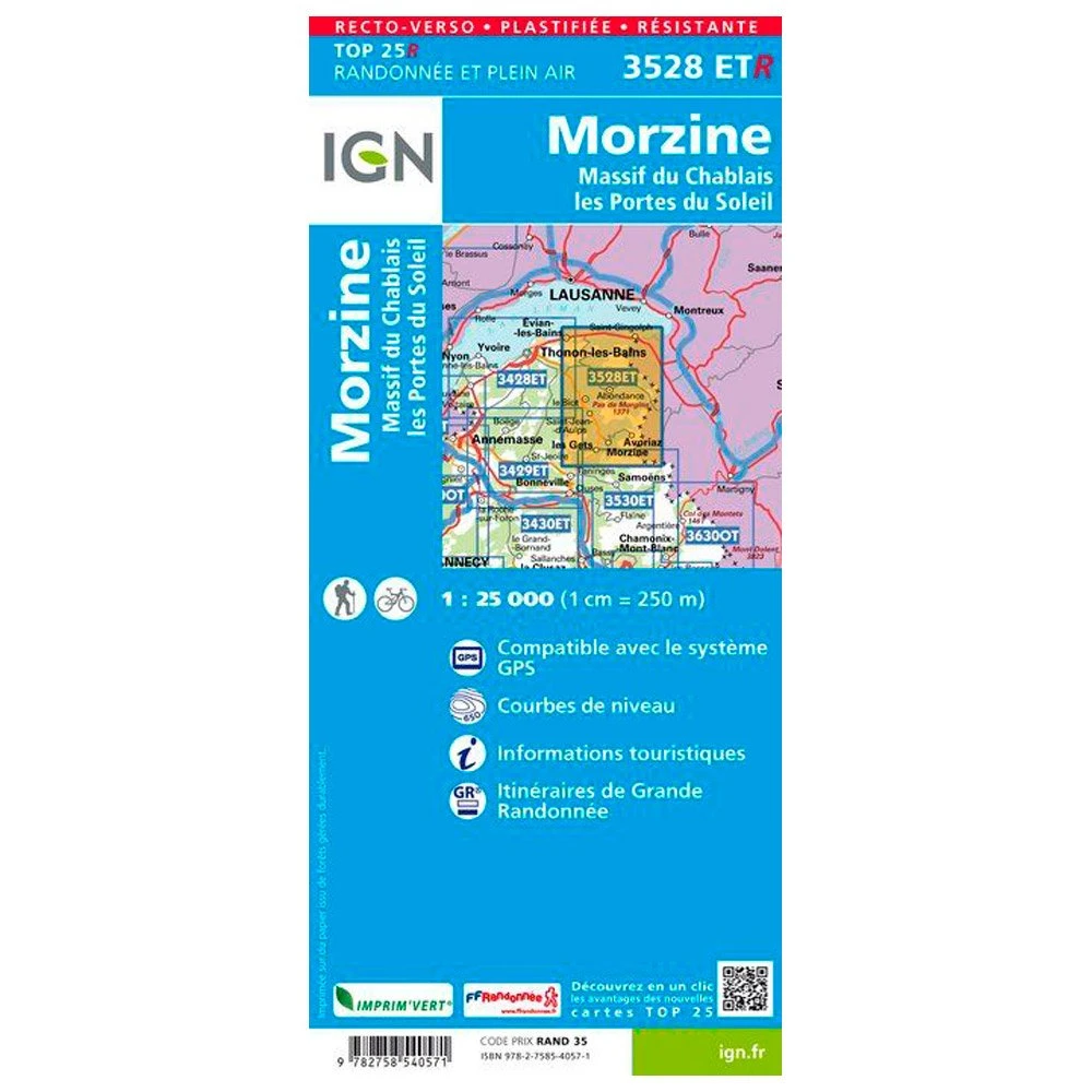 Explorez Morzine avec la carte de randonnée IGN 3528ETR . Cette carte très précise vous offre tous les détails du terrain, des voies de communication aux sentiers, en passant par les constructions et les arbres isolés. Vous trouverez également des informations touristiques et des sentiers balisés pour vous guider.