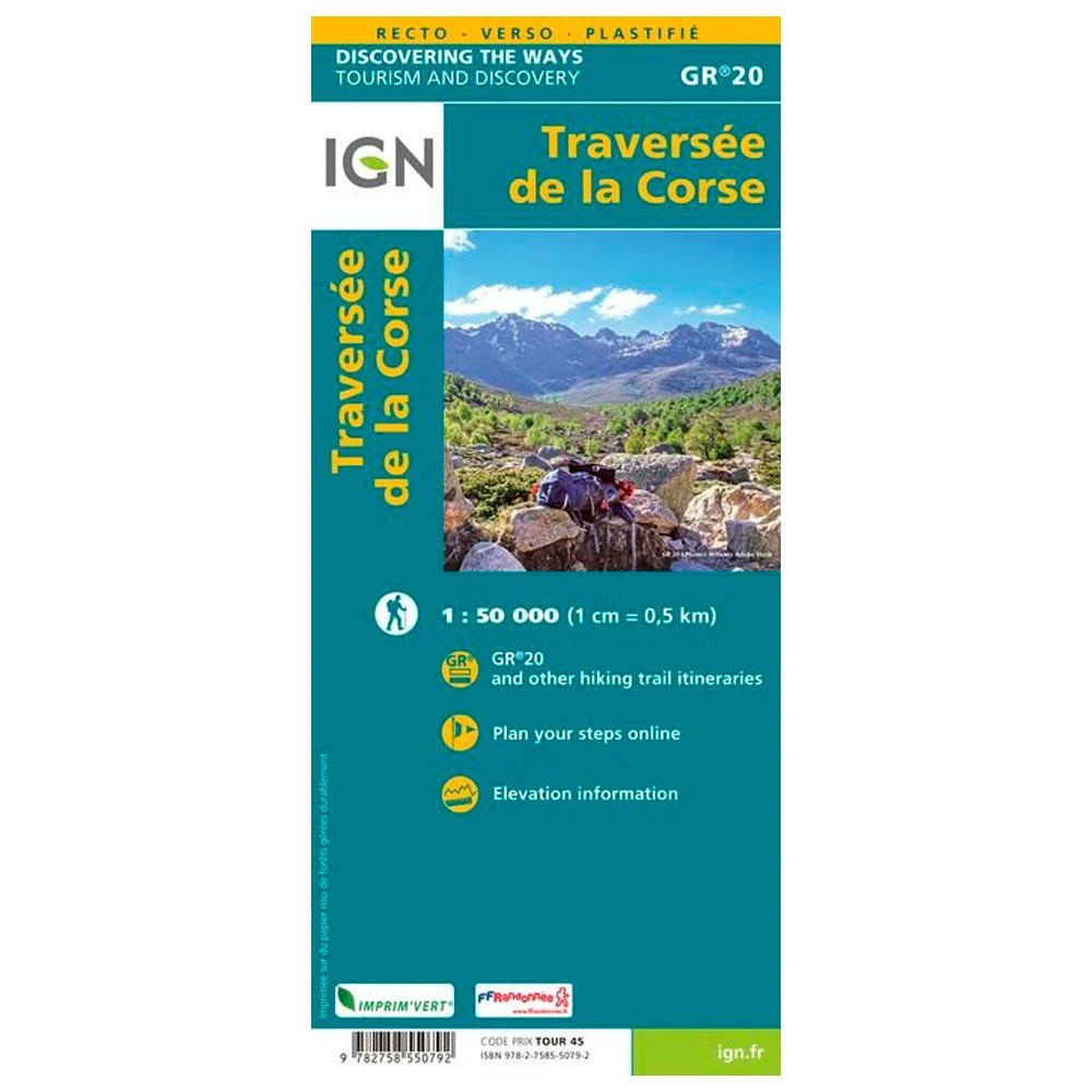 Parcourez le célèbre GR20 en vous aidant de la carte IGN Traversée de La Corse GR20. Conçue sur un papier plastifié résistant, elle est représentée à l’échelle 1:50 000.