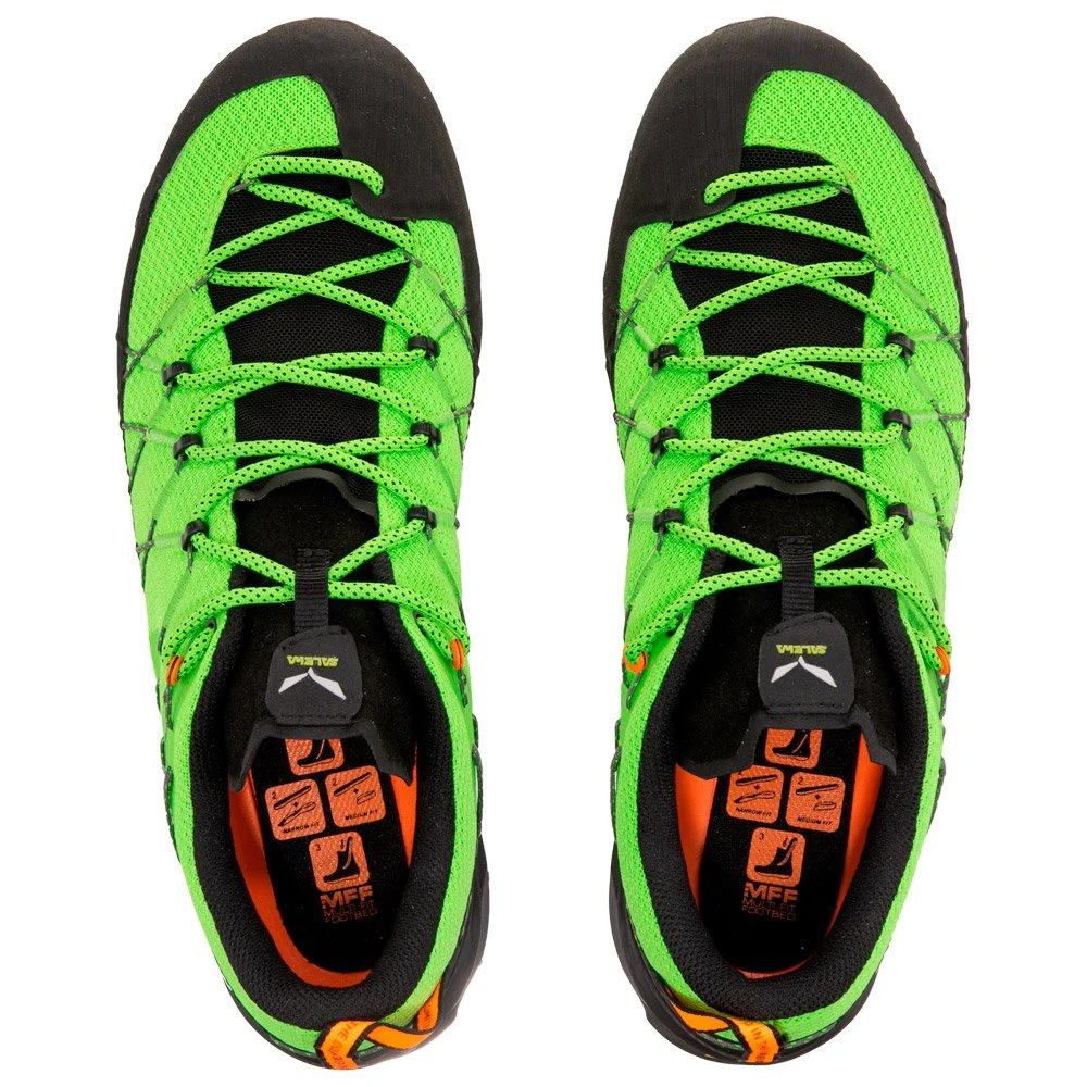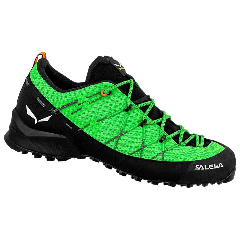 Les chaussures d’approche Wildfire 2 de la marque Salewa permettent une très grande agilité en montagne. Elles favorisent une utilisation polyvalente, aussi bien en rando alpine qu’en via ferrata. Fabriquée dans le nord-est de l’Italie, elles bénéficient d’une construction de haute qualité avec une tige synthétique en mesh recyclé. Super légères, elles sont robustes et respirantes. Leur système de laçage Switchfit, typé chausson d’escalade, démarre au plus près des orteils pour un ajustement extrêmement précis. Il permet d’être aussi à l’aise pour la marche que pour la petite grimpe. Les côtés sont maillés d’un fil Kevlar pour une tenue du pied encore plus efficace dans les passages techniques.