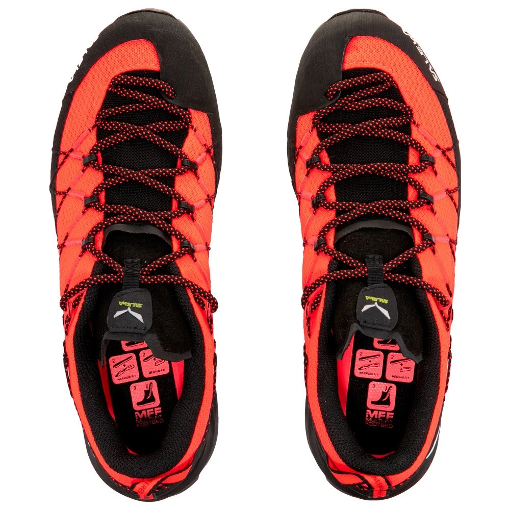 Les chaussures d’approche femme Wildfire 2 Wmn de la marque Salewa permettent une très grande agilité en montagne. Elles favorisent une utilisation polyvalente, aussi bien en rando alpine qu’en via ferrata. Fabriquée dans le nord-est de l’Italie, elles bénéficient d’une construction de haute qualité avec une tige synthétique en mesh recyclé. Super légères, elles sont robustes et respirantes. Leur système de laçage Switchfit, typé chausson d’escalade, démarre au plus près des orteils pour un ajustement extrêmement précis. Il permet d’être aussi à l’aise pour la marche que pour la petite grimpe. Les côtés sont maillés d’un fil Kevlar pour une tenue du pied encore plus efficace dans les passages techniques.