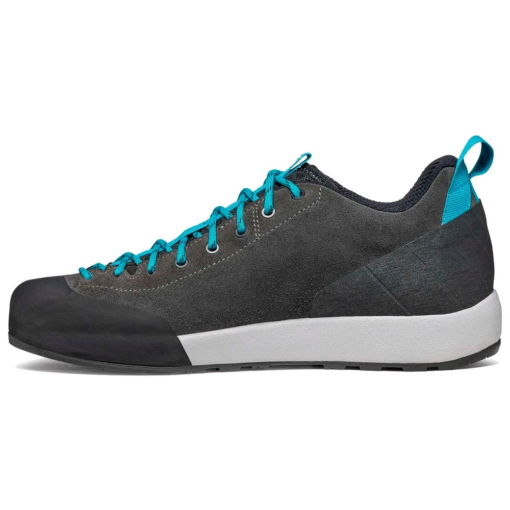 La Gecko de chez Scarpa est une chaussure performante qui permet de faire la jonction entre escalade et phase d’approche. Idéale pour marcher dans de bonnes conditions le temps de rejoindre votre spot de grimpe préféré ou pour des balades en pleine nature, elle dispose d’un laçage qui descend jusqu’aux orteils pour un ajustement précis et un maintien optimal. Le pare-pierre intégré offre une protection contre les impacts avec les roches et la semelle PRESA favorise une bonne sensibilité ainsi qu’une adhérence efficace.