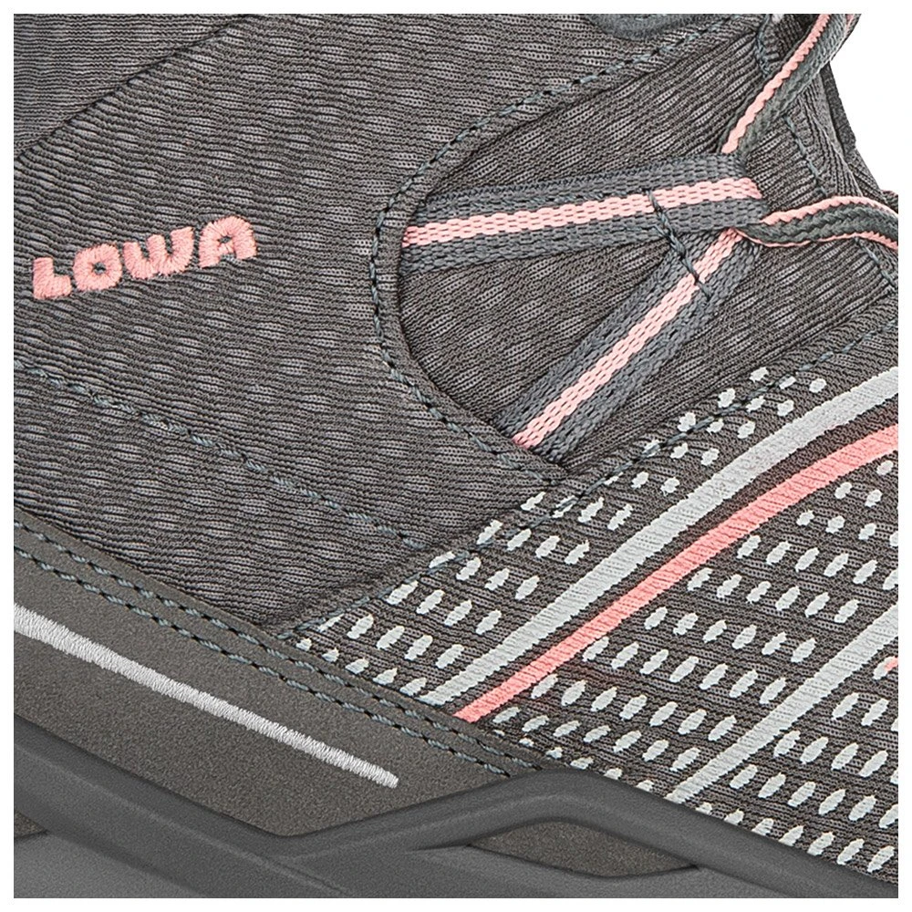 La Ferrox Pro Gtx Mid Ws est une chaussure sportive multifonction, particulièrement adaptée aux activités dynamiques en plein air. La semelle extérieure offre une bonne adhérence sur différents types de terrains grâce à son revêtement en caoutchouc et son profilage triangulaire. Le semelle LOWA Multi Trac permet également au pied de se dérouler naturellement, évitant ainsi de se fatiguer trop vite. Sur le dessus de la chaussure, la tige synthétique est à la fois légère et résistante. Elle a été conçue avec des pièces de grande taille pour éviter les frictions liées aux coutures, ce qui améliore grandement le confort de marche. Sa membrane imperméable en GORE-TEX protège vos pieds de la pluie, tout en les laissant respirer. Grâce à la technologie LOWA DynaPU, la semelle intermédiaire bénéficie d’un amorti confortable et durable.