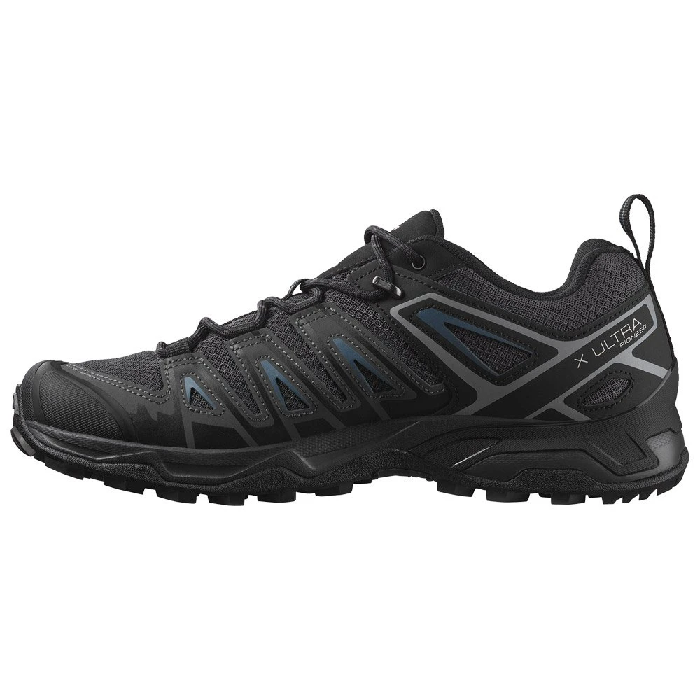 Les X Ultra Pioneer Aero de Salomon sont des chaussures de randonnée héritant de certains aspects de chaussures de trail pour ceux qui recherchent une protection et un confort irréprochables pour leurs excursions estivales. Dotées d’un avant du pied souple, elles disposent d’une construction SensiFit qui assure un fit sûr et précis. De son côté, l’insert moulé Advanced Chassis sur le talon vient offrir un maintien latéral optimal sans compromettre le déroulé naturel du pied. Elles apportent également de la légèreté et un déroulé toujours plus naturel du pied. La tige est conçue avec un mesh anti-débris qui empêche les débris de pénétrer dans les chaussures et de matière synthétique qui apporte résistance et protection. La doublure textile est souple et respirante afin de vous apporter le plus de confort possible. L’intercalaire EnergyCell offre une très bonne absorption des chocs, tandis que la semelle de propreté OrthoLite® procure un excellent amorti ainsi qu’une respirabilité et une durabilité exceptionnelles. En ce qui concerne la semelle externe, celle-ci bénéficie du Mud Contagrip® pour une meilleure adhérence sur terrain instables, meubles ou accidentés. Enfin, les X Ultra Pioneer Aero sont polyvalentes et pourront servir pour d’autres activités outdoor et également au quotidien.