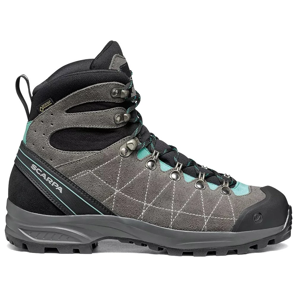 La Scarpa R Evo Gtx est une chaussure de trekking pour femme flexible, légère et offrant une bonne tenue de pied qui permet de partir marcher une journée en montagne dans de bonnes conditions. Idéal pour les randonnées à difficulté moyenne avec un sac à dos de poids moyen, elle reprend ce qui marche sur la version précédente avec quelques améliorations techniques en plus. La tige en cuir suède déperlant est maintenant doté d’une membrane Gore-Tex imper-respirante pour garder vos pieds au sec en toutes circonstances. Le bloc semelle est remplacé par un bloc plus robuste et adhérent qui assure un pas sûr qui offre une bonne accroche sur les irrégularités du terrain. On retrouve la technologie Sock-Fit pour un grand confort une fois les chaussures aux pieds et un meilleur maintien.