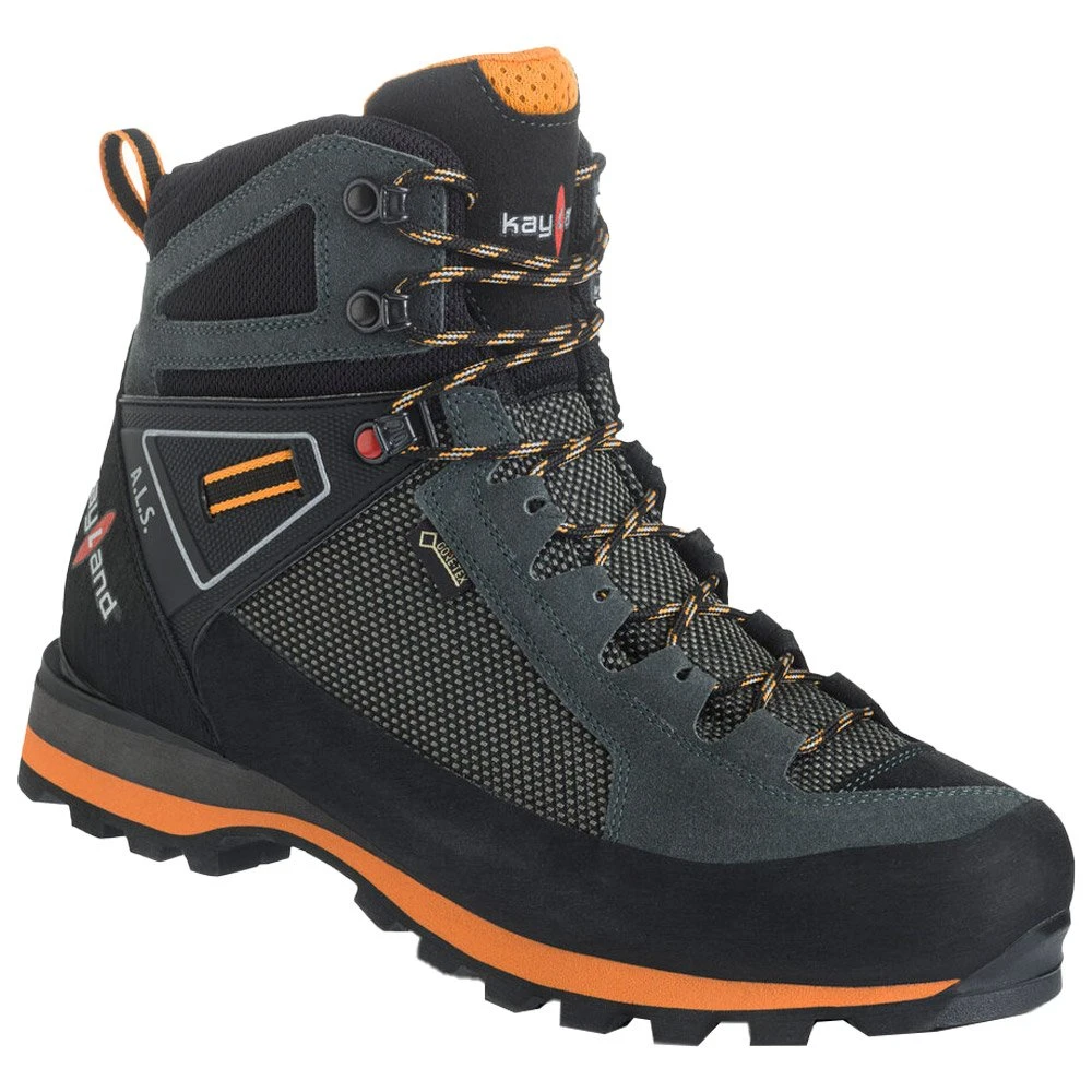 La Cross Mountain Gtx de Kayland est une chaussure de trek spécialement conçue pour offrir confort et performances sur des terrains mixtes, y compris des pentes de montagne. Que les passages soient techniques et rocheux, avec de la neige ou encore de la glace ce modèle est préparé pour une utilisation avec des crampons semi-automatiques. Vous aurez donc la possibilité de faire de la randonnée bien chargée comme du petit alpinisme. Elle est fabriquée avec des matières résistantes à l’abrasion et dotée d’une membrane Gore-Tex Performance Comfort pour une respirabilité maximale. Elle saura donc protéger vos pieds contre la pluie, les cailloux et l’humidité tout en vous assurant un maintien confortable grâce à son système Ankle Lock qui va protéger votre cheville. En plus, le système de laçage étendu combiné à une fermeture asymétrique offre des sensations plus précises et permet au pied de fléchir dans sa position naturelle. La semelle intercalaire microporeuse durable procure de son côté un excellent amorti et la semelle extérieure Vibram Mulaz Evo avec ses crampons de 5 mm assure une adhérence optimale afin de ne glisser nulle part. De gros pare-pierres sont également présents pour vous protéger de toutes les agressions de la montagne.