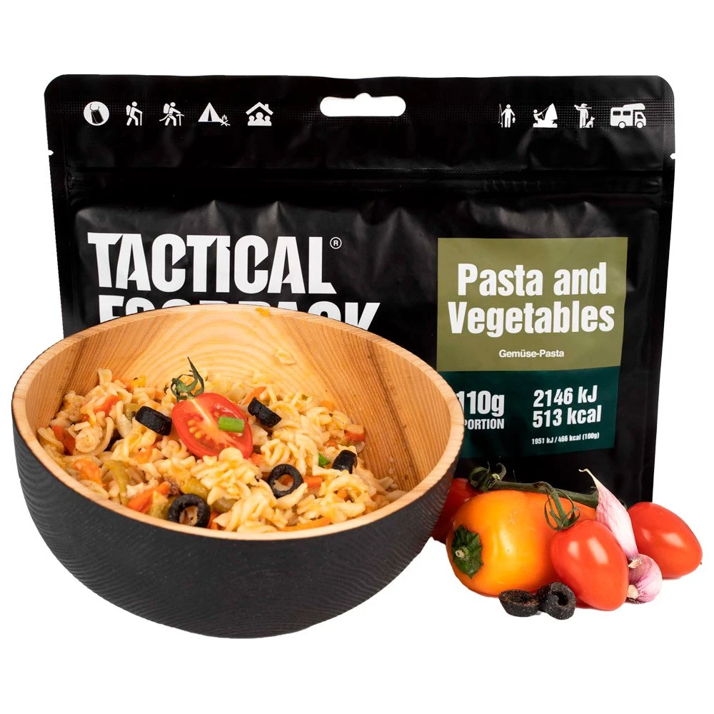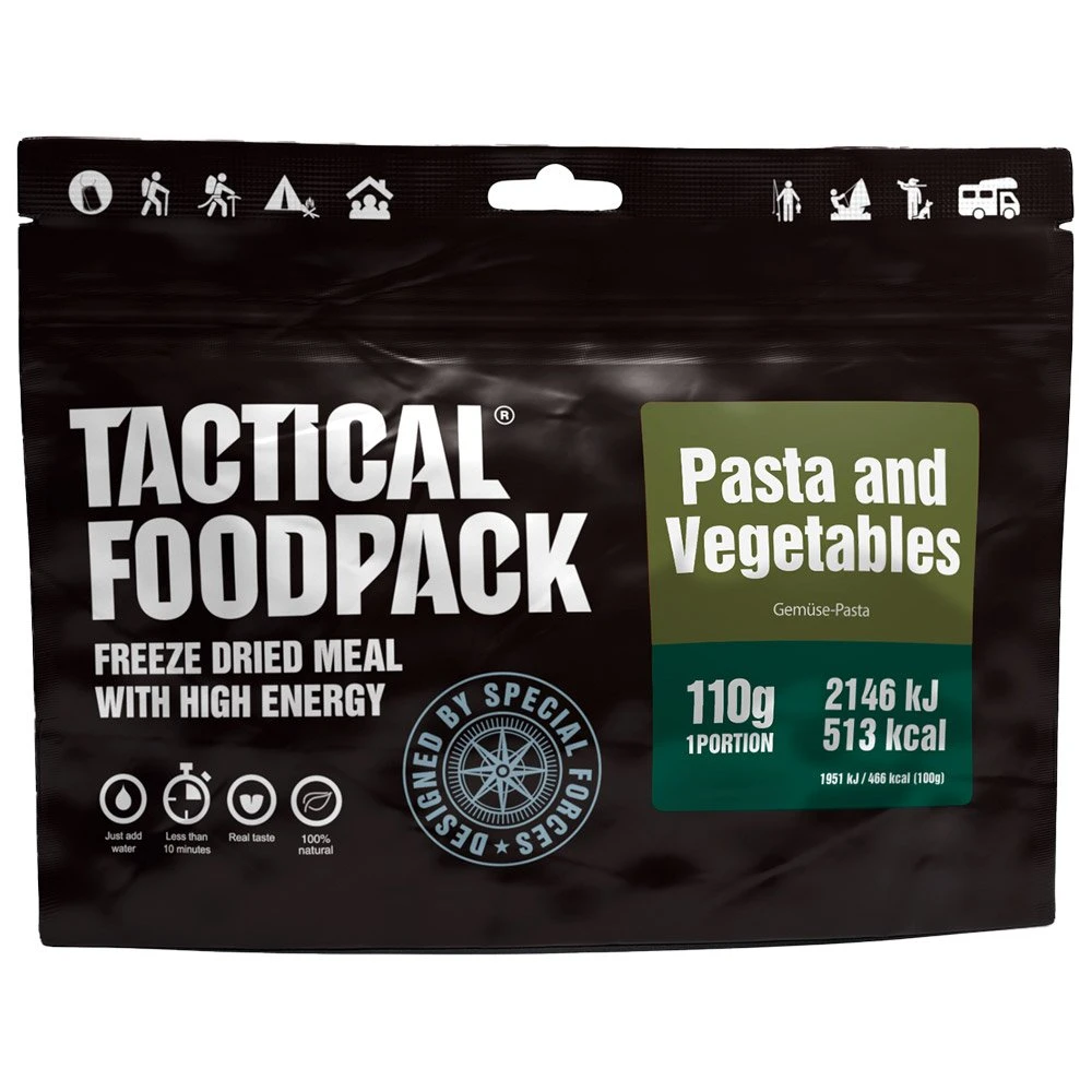 Idéales pour profiter d’un bon repas roborant, les Pâtes et Légumes 110g Tactical FoodPack sont lyophilisées pour améliorer leur durée de conservation et faciliter leur transport.