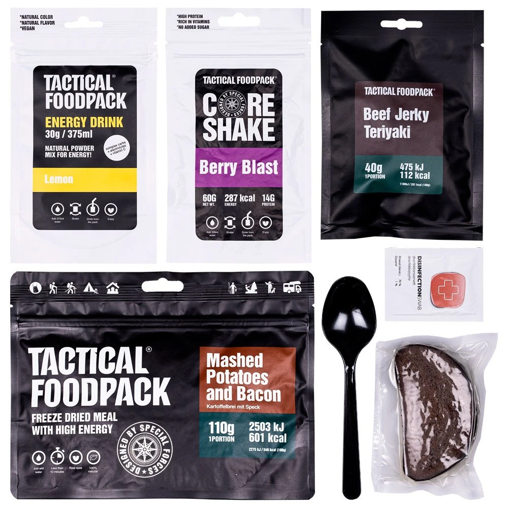 La Ration Delta Tactical FoodPack est idéale pour les amateurs de plein air qui cherchent à se régaler en faisant le plein d’énergie. Chaque ration comprend un repas lyophilisé, un en-cas, une barre énergétique, une boisson énergétique et une lingette désinfectante pour les mains afin d’être autonome pour la journée.