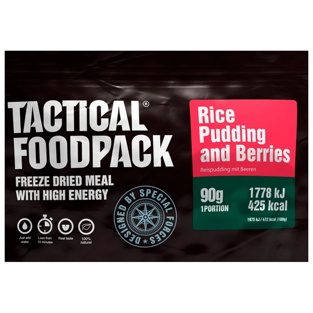 Le Riz au lait et aux baies 90g Tactical FoodPack est parfait comme dessert ou petit déjeuner lors de vos treks de plusieurs jours. Compact et très léger, il prend peu de place et offre un excellent apport en énergie.