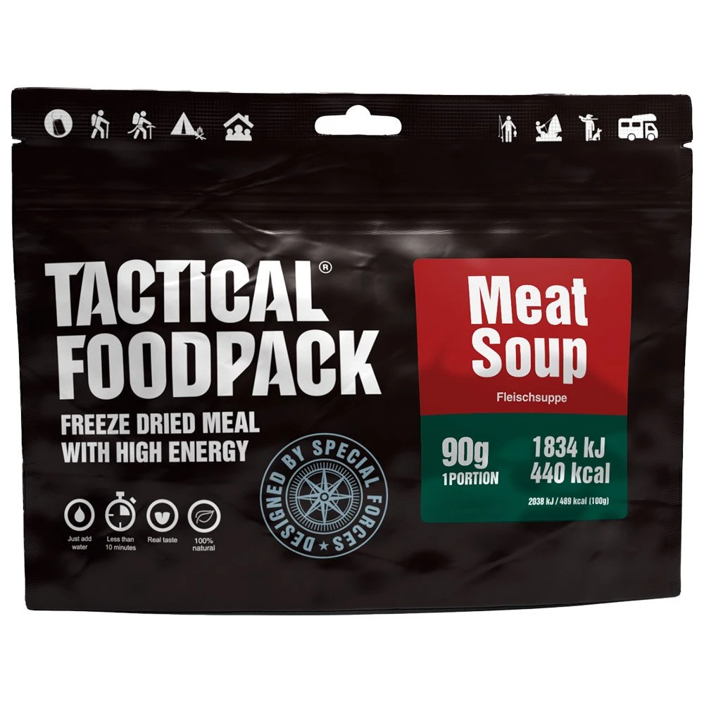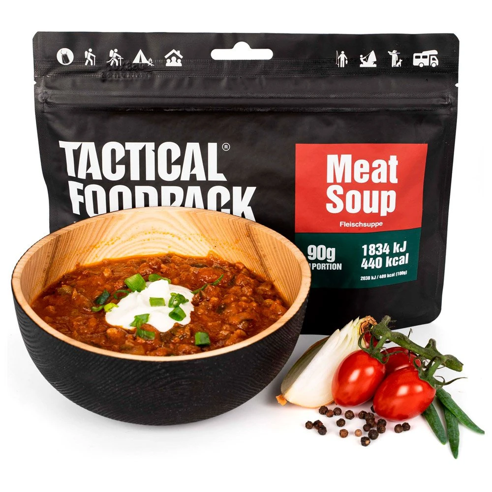 La Soupe à la Viande 90g Tactical FoodPack est une combinaison délicieuse de saveurs et d’ingrédients naturels. Avec sa méthode de lyophilisation avancée, ce repas est facilement transportable et idéal pour les bivouacs en pleine nature.